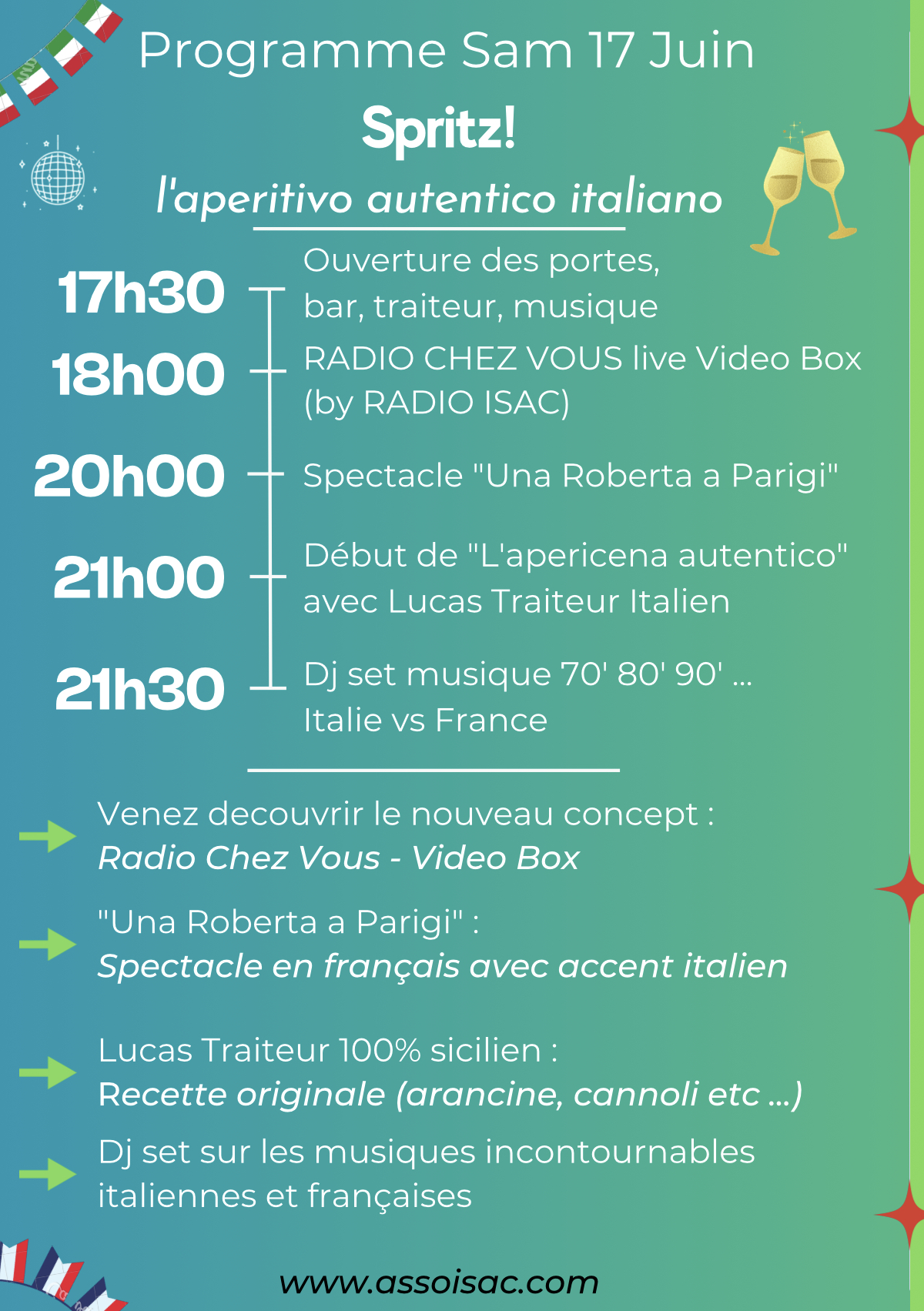 Le 17 juin l'association ISAC a lancé "l’aperitivo autentico italiano" avec la participation de Roberta Checchin, la plus parisiennes des italienne.